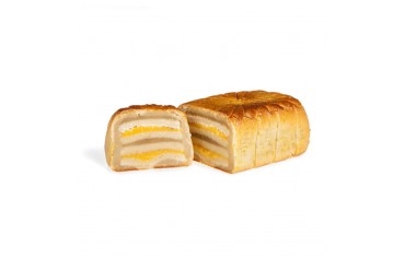 INGREDIENTES: Mazapán (ALMENDRA 55 % origen España, azúcar, agua, ralladura de limón y conservante ácido sórbico), yema confitada (YEMA de huevo, azúcar, glucosa, conservante ácido sórbico y emulgente E466), dulce de batata (batatas, azúcar, glucosa y ácido sórbico E200), YEMA Y CLARA de huevo, canela molida y oblea (almidón de patata y lecitina de girasol E322) y HARINA DE TRIGO. PUEDE CONTENER TRAZAS DE DERIVADOS LÁCTEOS Y NUECES.