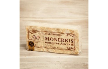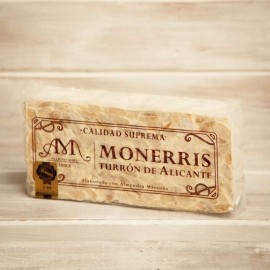 INGREDIENTES: Almendra marcona 65 % origen España, miel de romero o azahar 19 % origen España, azúcar, obleas (fécula de patata y aceite de girasol) y clara de huevo. ELABORADO EN UNA FABRICA QUE UTILIZA CACAHUETE Y OTROS FRUTOS DE CÁSCARA, LECHE, SESAMO Y SOJA. NO CONTIENE GLUTEN.
