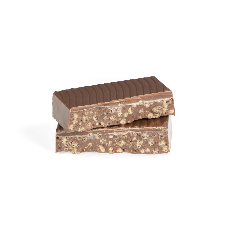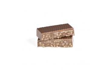 Ingredientes: Azúcar, manteca de cacao, LECHE entera, arroz inflado 10%, pasta de cacao, emulgente (lecitina de SOJA) y aroma (vainillina). Solidos de cacao: 32 % mínimo. PUEDE CONTENER TRAZAS DE CACAHUETE Y OTROS FRUTOS DE CÁSCARA. NO CONTIENE GLUTEN NI NINGÚN INGREDIENTE PROVENIENTE DE ORGANISMOS GENÉTICAMENTE MODIFICADOS. INFORMACIÓN NUTRICIONAL EN 100 g: V. energético: 525 Kcal; Grasas: 30 g, de las cuales saturadas: 19 g; H. carbono: 57 g, de los cuales azúcares: 47 g; Proteinas: 6 g; Sal: 0,001 g CONSERVAR EN LUGAR FRESCO, SECO Y ALEJADO DE OLORES. TEMPERATURA IDEAL DE CONSERVACIÓN 18º - 20º C