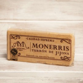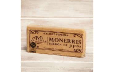 Ingredientes: ALMENDRAS marconas tostadas (68 %) origen España, miel de romero o azahar (17 %) origen España, azúcar, y CLARA DE HUEVO. ELABORADO EN UNA FÁBRICA QUE UTILIZA CACAHUETES, OTROS FRUTOS DE CÁSCARA, LECHE, SOJA Y SÉSAMO. NO CONTIENE GLÚTEN. VALOR NUTRICIONAL EN 100 g: V. energético: 564 Kcal; Grasas: 39 g, de las cuales saturadas: 3 g; H. de carbono: 34 g, de los cuales azúcares: 32 g; Proteinas: 17 g; Sal: 0,01 g CONSERVAR EN LUGAR FRESCO Y SECO